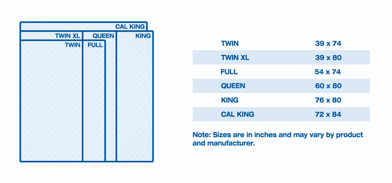For example, queen size accessories accommodate a standard queen bed that measures 60 inches wide by 80 inches long.